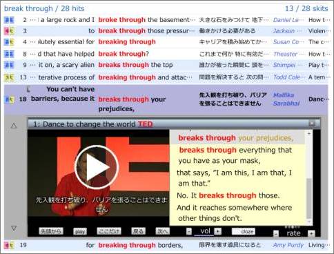 キーワードは break through、コーパスは TED Talks