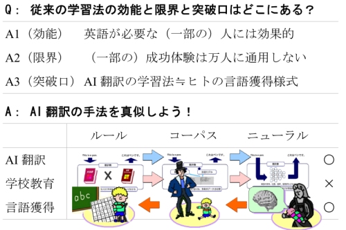 - AI翻訳機はヒトを真似て成功した。今度は我らヒトがAIを真似て語学を習得する番である。