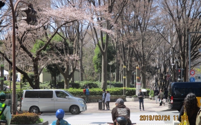 会場近くの新宿中央公園の桜は、まだ5分咲きだった