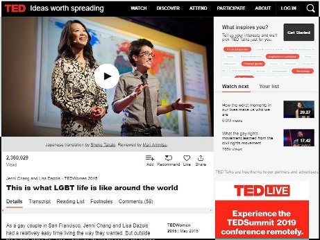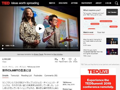 - LGBT について語った TED Talks を探す (その1) / TED サイト