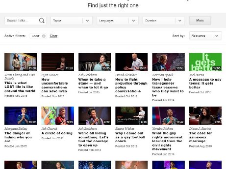TED Talks の公式サイトにアクセスして、LGBT を検索する。