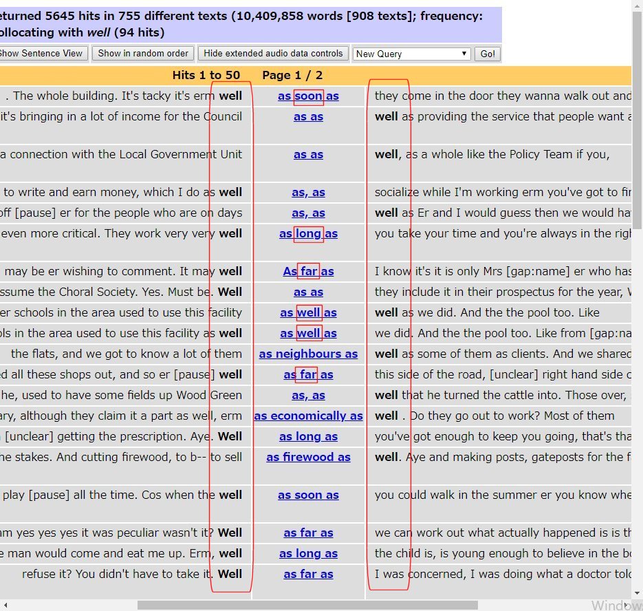 機能語に交じって、上から18番目にそれらしい "well" を見つけたので、用例を表示させてみた。それが次の図