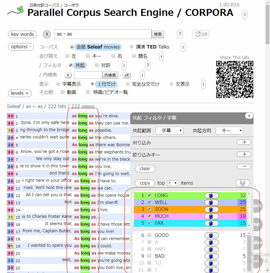そこで as 〜 as に入る語彙収集用アプリを作成することにした。ただし一からではなく、自作の 日英対訳コーパス・CORPORA に組み込むことにした。