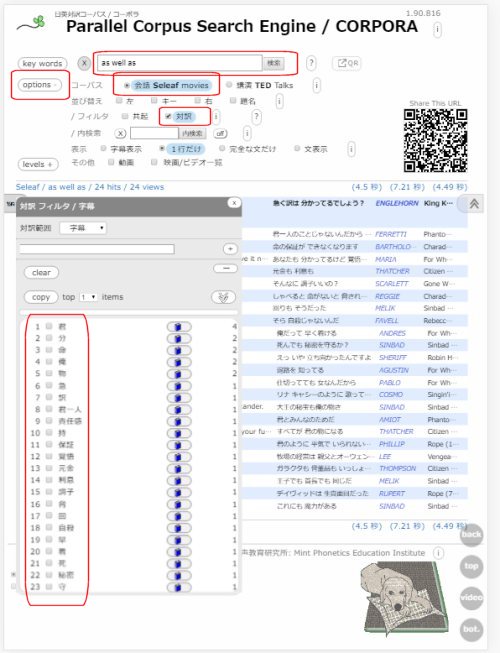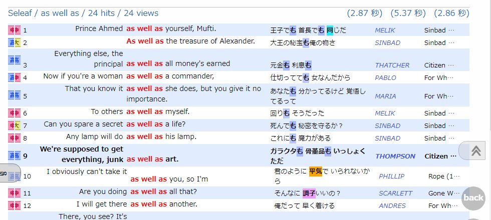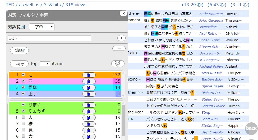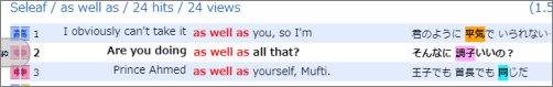 集まった字幕から "as WELL as" に関わるものだけを探す