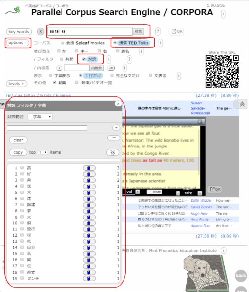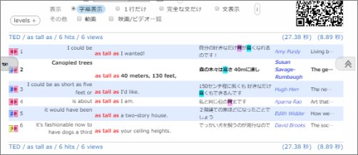 Seleaf コーパスでは1件しかヒットしなかったので TED コーパスをつかう。