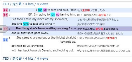 コーパスは “講演 TED Talks” のままで、“run to” を検索する