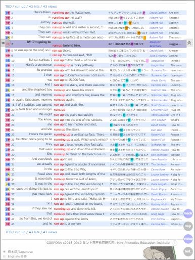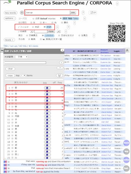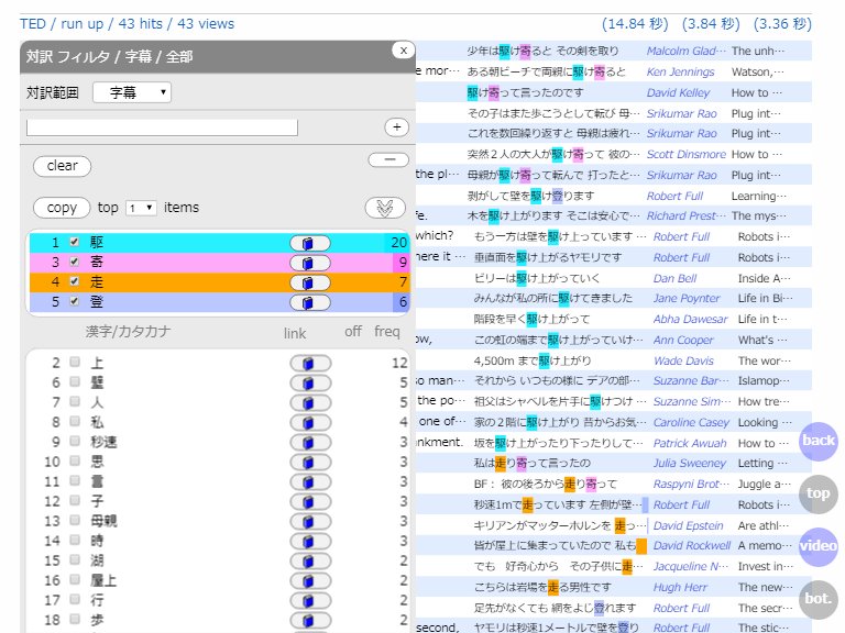 コーパスは “講演 TED Talks” のままで、“run up” を検索する