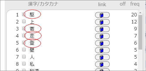 ここでは "駆" "寄" "走" "登" の4つを選んだ