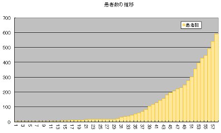 | 月 | 日 | 日毎患者数 | 累積患者数 | |
