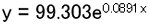 赤い折れ線が日ごとの患者累積数を示し、黒のラインが指数関数による近似曲線である。 が近似式であり、R2=0.9952 が近似の精度を示す。精度が高いほどこの数値は1に近付く。0.9以上なので極めて正確に近似できていることがわかる。