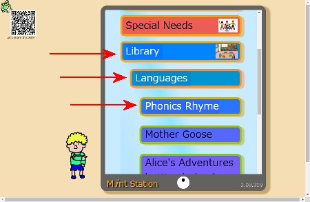 - トップメニューから Library → Languages → Phonics Rhyme → Unit 1 とたどる.