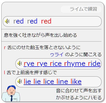 ここでは /r/ と /l/ の間違いなので 2つの音が区別できるようになるためのライム課題が準備されている。