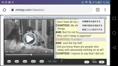さらに、配役ごとに字幕の色を変えたり、スキットを切り出して繰り返して名場面のやりとりを楽しめるように工夫しています。