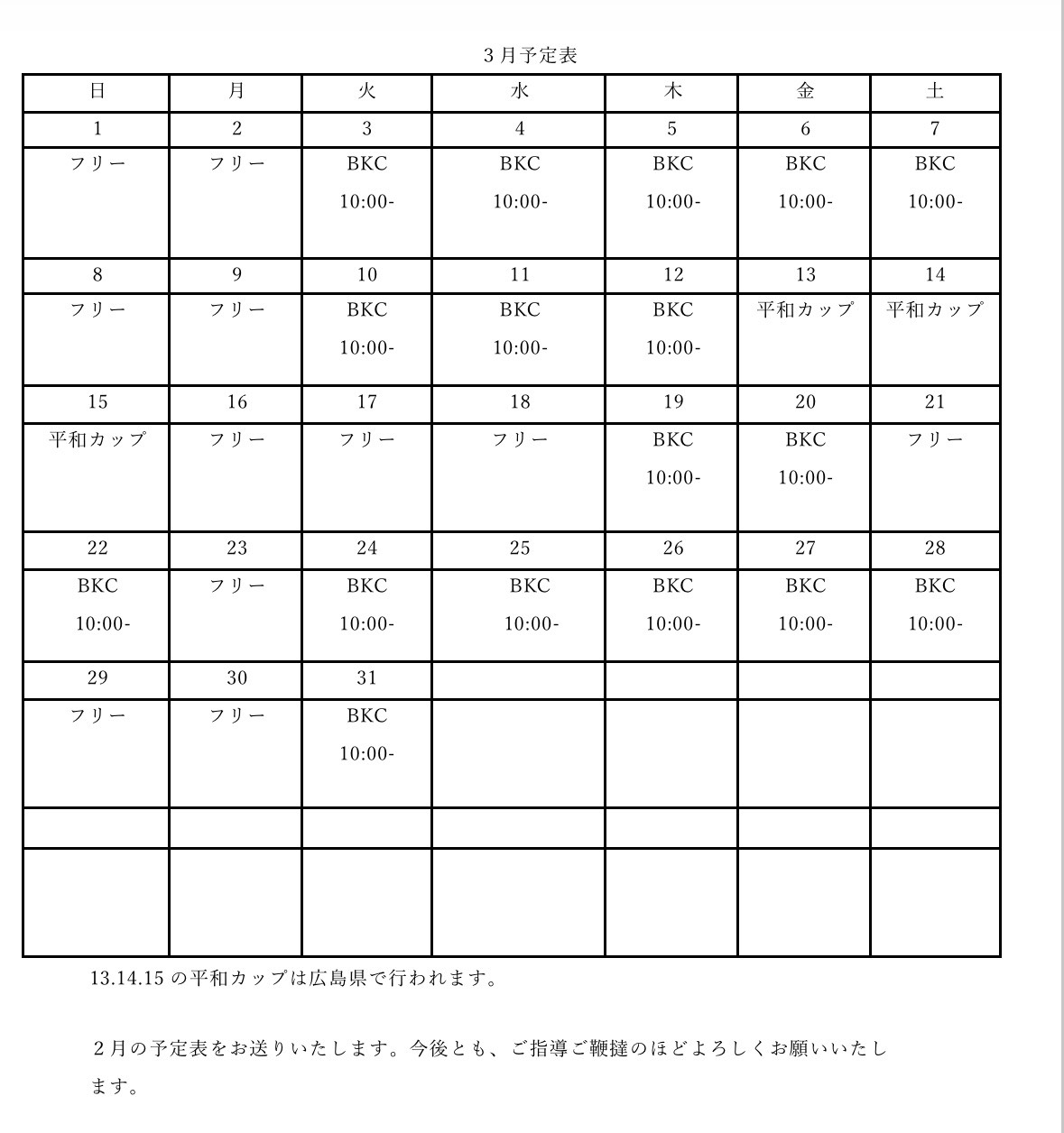 男子3月予定表