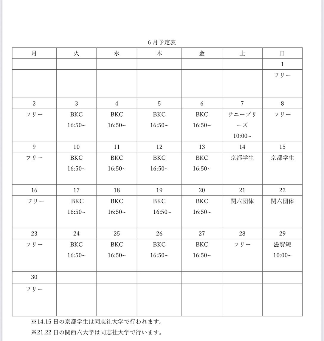 9月男子予定表