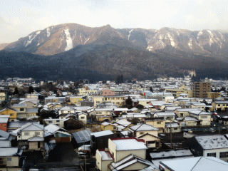 なかなか怒りがおさまらない雌キツネは、手当たり次第に石ころを畑に放り込んだ。写真は、小国地方の山村風景