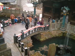 仁王門を潜ると池がある、でかいコイが沢山泳いでいる |