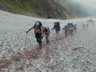 ![]() 大雪渓を登る Photo by yosida |