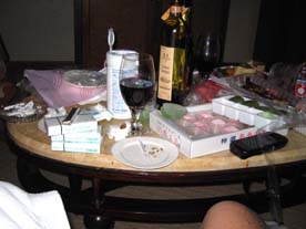 といって バッグを開け 機内からぱくってきたワイン!を