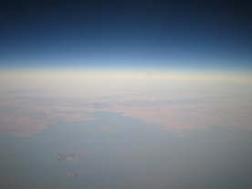 左の写真は 向こうを飛んでる 飛行機です