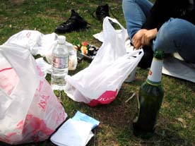 周りで我々のように座り込んで飲んだり食べたりする人は居ませんでした