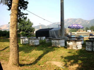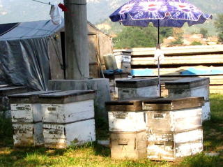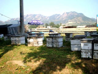 帰る途中 養蜂のテントと箱を見かけたんで
