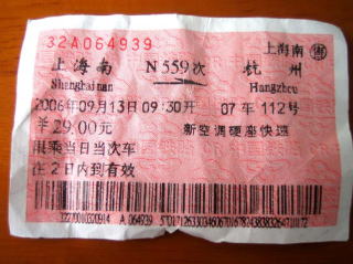 杭州行きの切符です