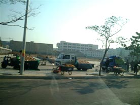 左は 日本では珍しいロータリー 右は路上の野菜売りのおばちゃん達