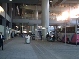 一階 バス停で OCAT行きのバスを待ちます