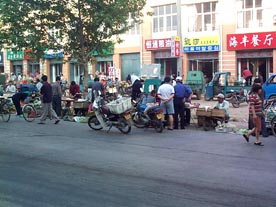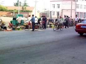 青島 工場の近くの村では道路の脇でいろんな物が売られています。