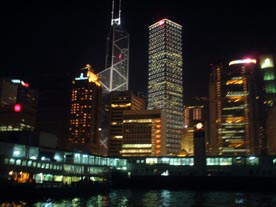 夜景を海上から見ながら 香港島を後にし 九龍へ 戻ってきました