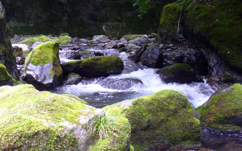 ![]() ▲私好みの渓相が続きます。 苔生して良い感じです。イワナが出そうなんですがヤマメが出ました。 |