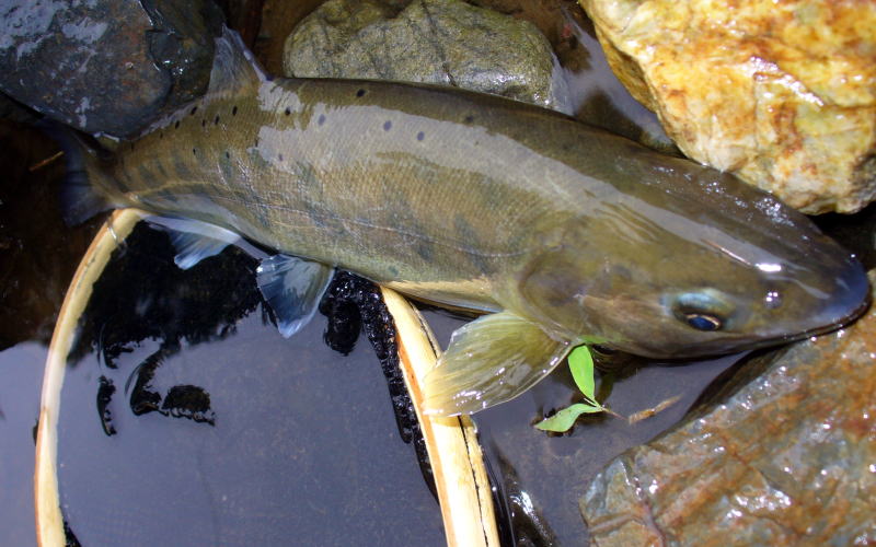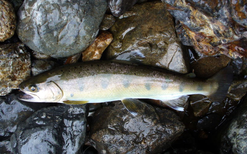 ![]() ▲成魚放流のヤマメ 尾が若干未発達でした。 |
