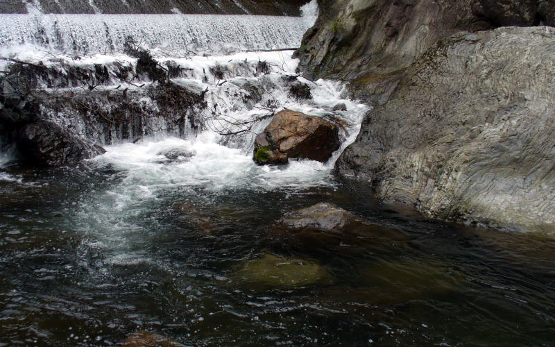 ![]() ▲最後の堰堤 ここはエリアBの入渓点です。時間はPM5:00、15分前、最後に上げたい! |