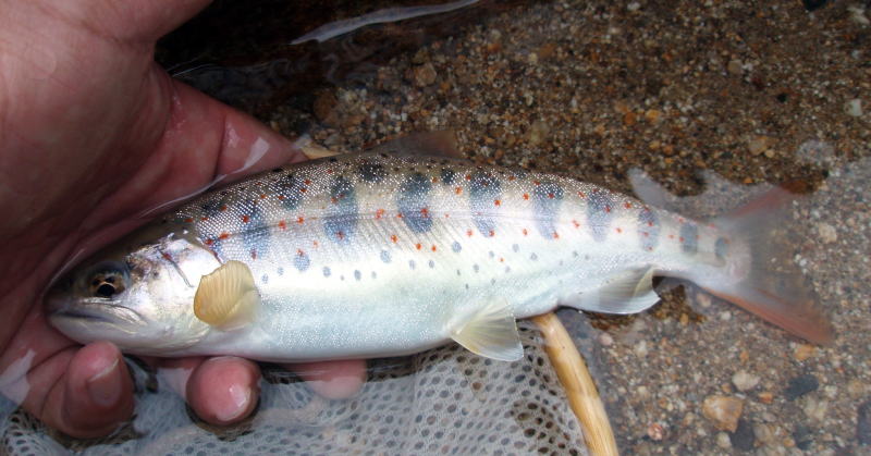 | ▲自然渓流の経験は浅いものの管釣りで鍛えた腕は確かです。ミノーを巧みに操り型を揃えます。 11時に上流に行った餌釣り師と待ち合わせですので我々は少し早めにロットをしまい上流に向かいます。 |
