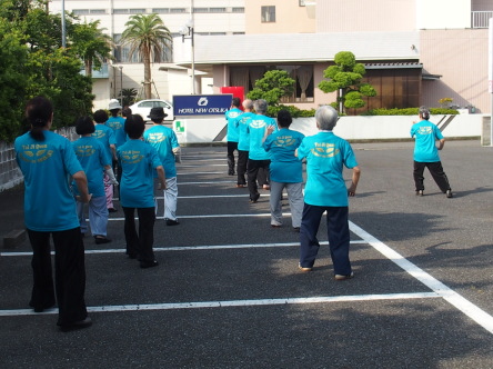 去る6月16~17日、千葉県九十九里海岸白子温泉のホテルに宿泊、 隣接するアリーナを貸し切りにして太極拳合宿が行われた。 2日間太極拳三昧の研修、夜は賑やかに宴会と、楽しい合宿となった。 写真説明:上:左;1日目 右;早朝太極拳 下:左;2日目 右;百花拳