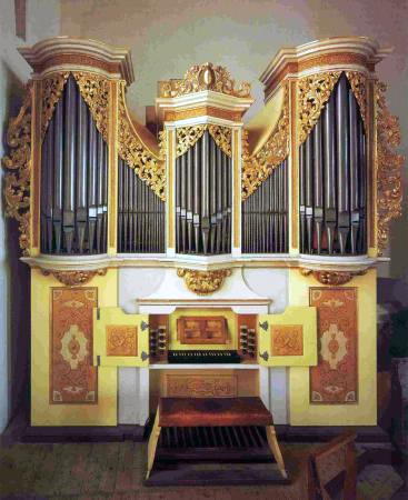 | @ | Manual C-c''' Principal 8' Gedackt 8' Octava 4' Rohrflote 4' Nassat 3' Octava 2' Quinta 1 1/2' Sifflote 1' Mixtur III Cymbel II Cornet III |