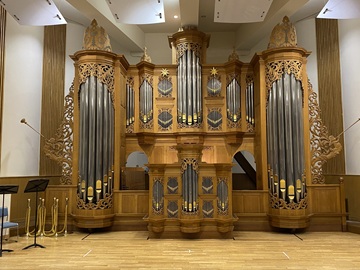 Bw-Hw,Hw-Ped Tremulant to whole organ Cymbelster Mechanical action |