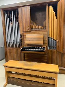 II.Brustpositiv C-g''' (schwellbar) Regal 8' Gedecktflote 4' Quinte 1 1/3' Terz 4/5' Tremulant |