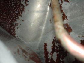 放置後錆が落ちたかなぁと液を抜き、ホースの水圧で残っている錆を洗い流す。