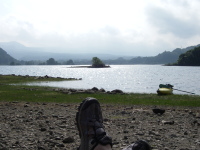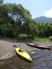 | カナディアンでのツーリング。 磐梯山がくっきりと美しい。 カヌーでいく浜では, こんな景色を占領できる。 暑かったら泳いでしまえばいい。 そんな自由さがすきなのだ。 |