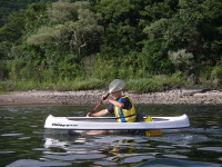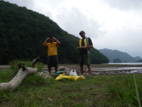 | 岩手から中学2年生の少年が一人でやって来た。 せっかくだから,日ごろはできない体験をさせてやろうと, カナディアンカヌーで那珂川を下ることにしたのだ。 |