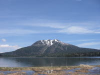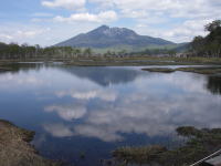 | ■水芭蕉の白いがくには,花を包んだ跡がくっきりと残っている。 | ■長蔵小屋方面を見る。初夏の木々が何とも言えず,いい。 | ■尾瀬沼に映る燧ケ岳だ。静かにどんと美しい。 |