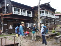 | ■同行のK氏。ノーファインダーのローアングルのリュウキンカ。 | ■見晴は目の前。最高のロケーションである。 | ■宿泊はこの尾瀬小屋だ。このあとすぐに風呂に入る。快適なのだ。 |