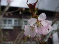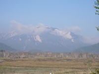 | ■見晴の桜。まだ咲き始めである。さすがに標高のある尾瀬だ。 | ■2日目の朝。日が差した至仏山がとても美しい。 | ■尾瀬沼へのルート。今年は雪が少ないのだが,それでもこんな場所もあった。 |
