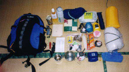 その他,写っていないが,スケッチのためのセットと,カメラ,手袋を装備している。 |
