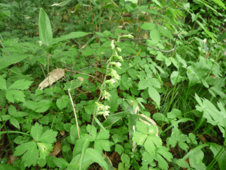 散策路脇に結構咲いているのですが、花の色が緑色なので他の植物と見分けがつかず、ぼんやり歩いていると見逃します。花は庭に咲いているスズランに似ていてじっくり見ると結構可憐な花を付けています。