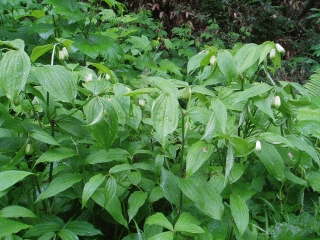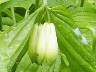 | 野幌森林公園内では普通に見られる花で、道路わきや明るい林の中でひっそりと咲いています。花の先端が緑色になっているのが特徴で普通は花が2個ついていますが1〜3個をつけるようです。花の先端はこれ以上は開きません。 |