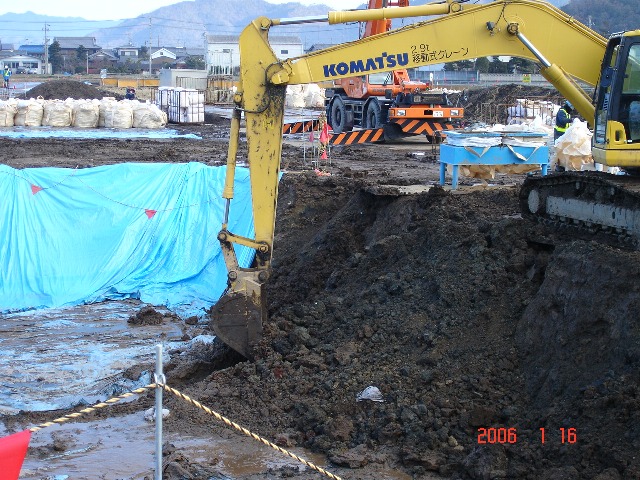 岐阜市西部の水田に埋められたフェロシルトの撤去作業