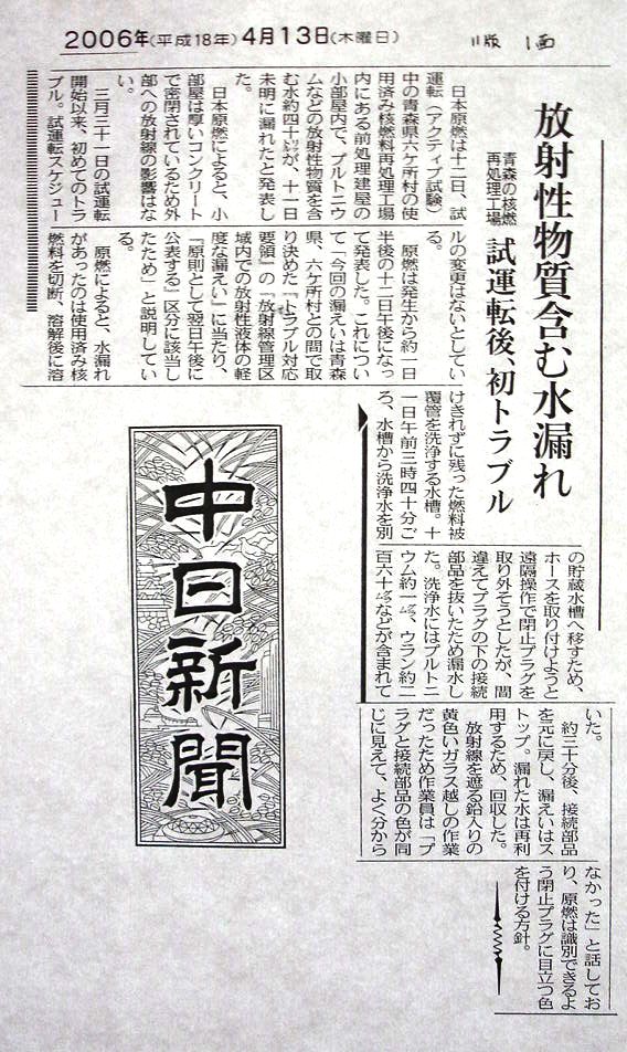中日新聞2006年4月13日 1面 11版